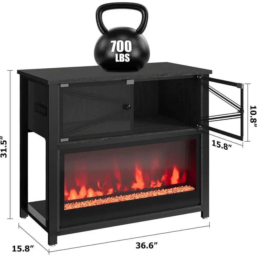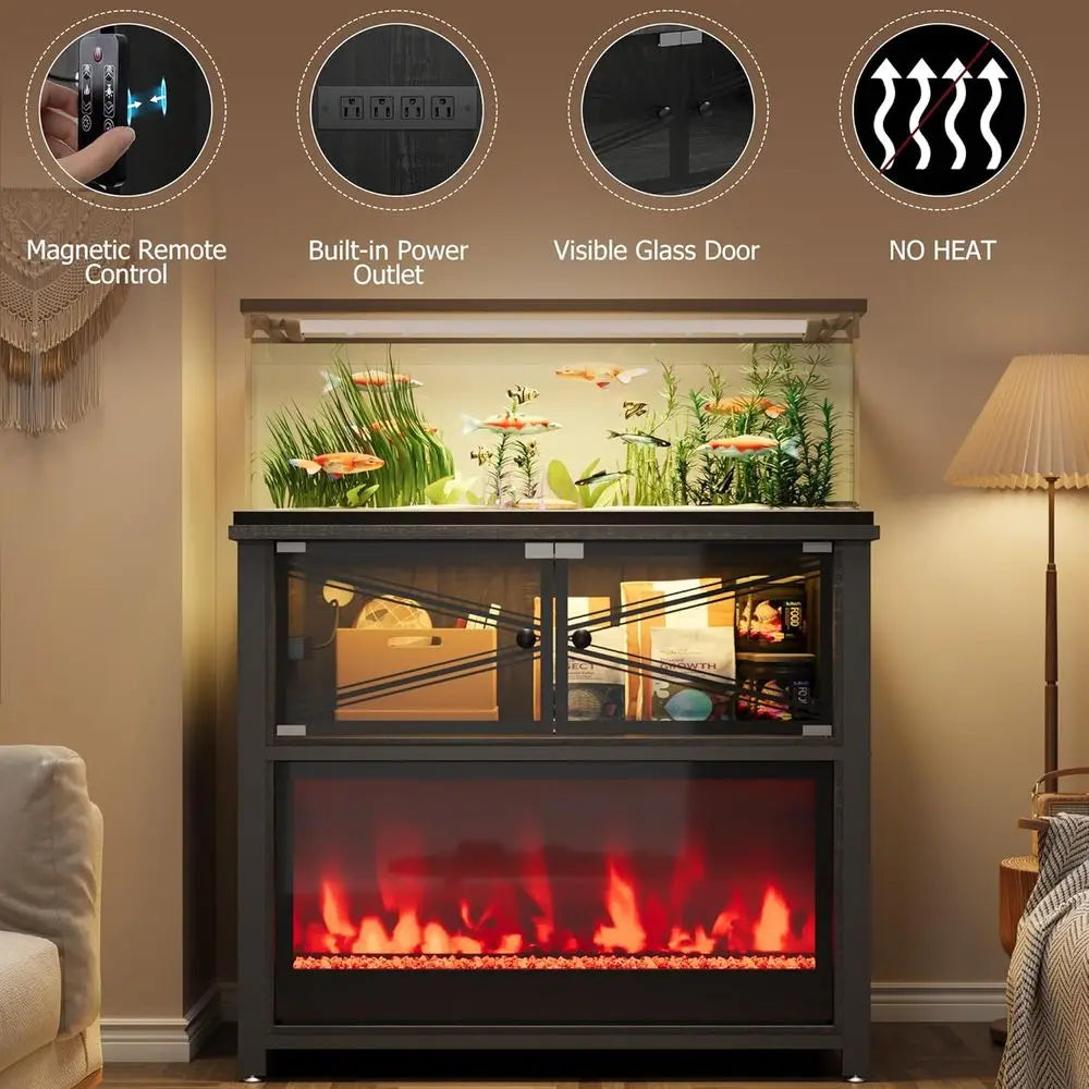 Elevate your living space with a modern glass-doors aquarium stand that brings immersive LED flame ambiance to your aquarium setup.