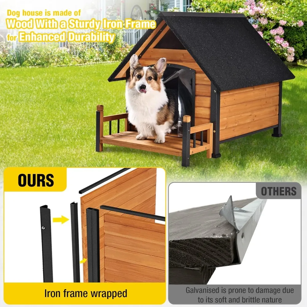 - Quality Materials: The dog house is made of high-quality wood with a sturdy iron frame, and all panels are framed with metal for added strength, contrasting with other models that use fragile wooden legs and lack metal framing
