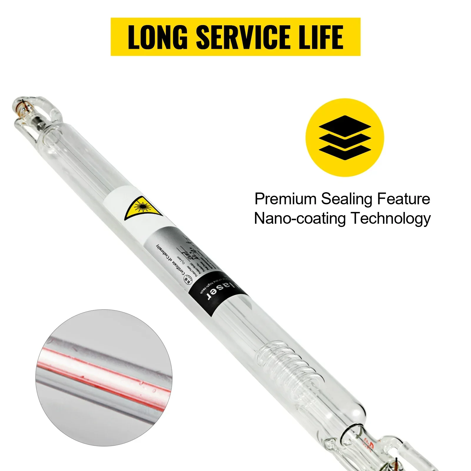 VEVOR CO2 Laser Tube 40W 50W 60W 80W 100W 130W 150W 700mm to 1830mm Length Glass 80mm Dia Long Service Life For Laser Machine